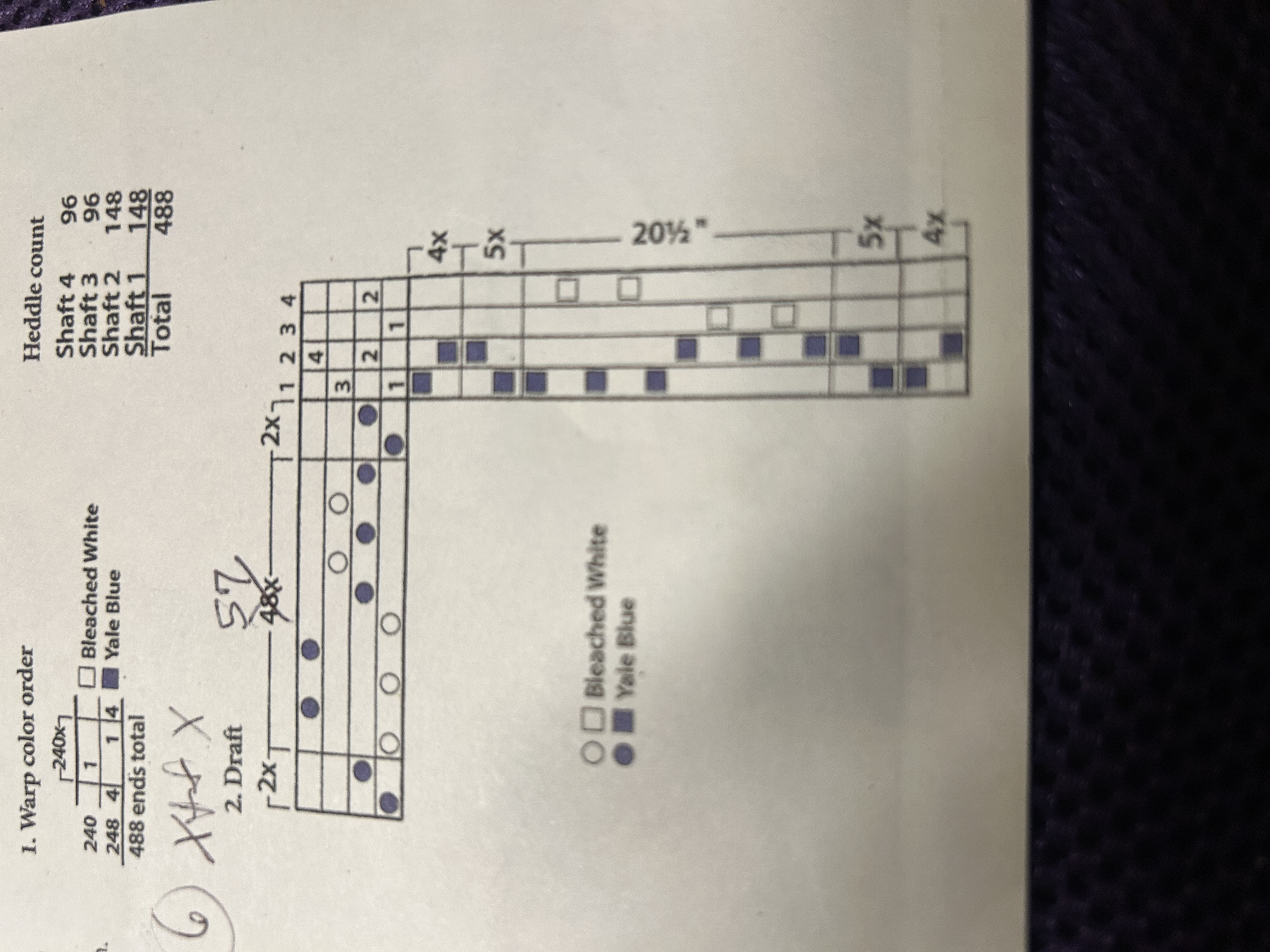 578warp ends sett at 24 EPI. 2/ dent in a 12 dent reed
